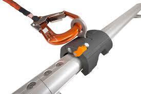 The flexible SKYLINE SYSTEM is a stainless steel rope safety system for horizontal applications. Functional description: The SKYLINE RUN can be attached or removed at any point of the system. The user can freely move along the rope without having to reposition the intermediate anchor and curved parts.